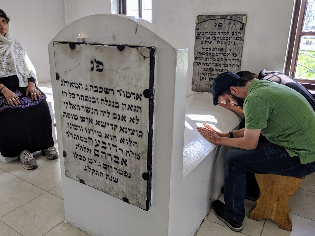 “His tziun (gravesite/house) is only a locked little brick building with his grave in the middle covered with kvitlach (handwritten petitions). There was just enough room and light inside for the 11 of us to hold hands and dance in a circle,” Rabbi Davis wrote on Facebook. “Friends, I don’t really know how to describe it, but the cramped dark room seemed so filled with the rebbe’s warm and constant love-light. Manachem Nachem is the author of the Meor Enayim, a hasidic text that insists over and over that everything and everyone one is nothing but G!d. It was bizarre to encounter this rebbe’s simple love while visiting a place known for its destruction.”
