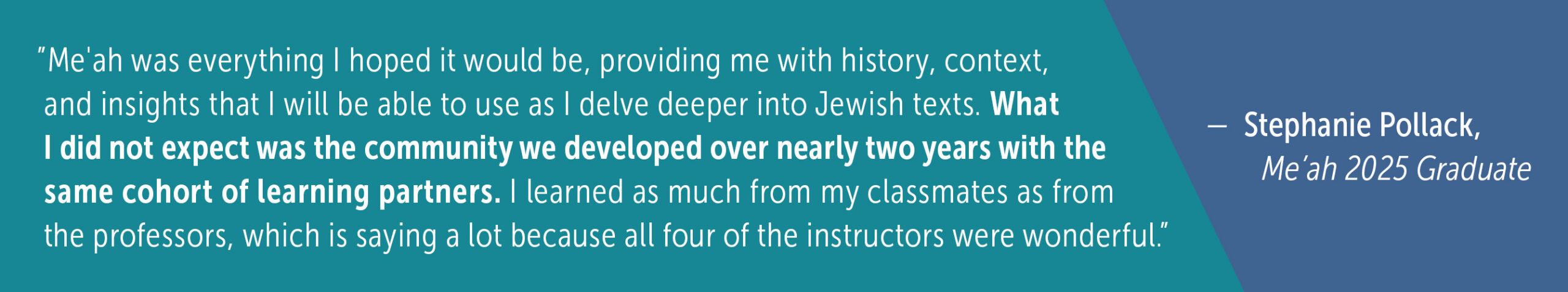 Who are the instructors? Me’ah instructors are Judaic scholars or clergy with advanced degrees. They bring a high level of scholarship, teaching, and discourse found in college and university settings to our Me’ah classes. Learn more about our gifted and committed instructors here.